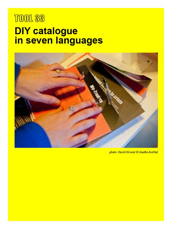 The We-Traders exhibition is, similar to the projects it is showing and connecting, an experiment in co-creating a social situation. The collaborative process that shaped We-Traders took place in Berlin, Brussels, Lisbon, Madrid, Munich, Rome, Toulouse and Turin over a period of two years. Next to us, as artistic directors and the project lead in Brussels, six local Goethe-Instituts, seven co-curators and 30 We-Trader projects were involved. As milestones of this collective effort we count the Co-Curators Lab in Rome July 2013 and four We-Traders Fora in Autumn 2013. During the We-Traders tour that started January 2014 in Madrid and ended March 2015 in Brussels, the exhibition went on being not only a space of presentation, but a space to meet and co-produce with more than 30,000 visitors. The Tool Story presents our collection of tools we used, adapted and invented in the process and is published in full in the We-Traders E-Book.